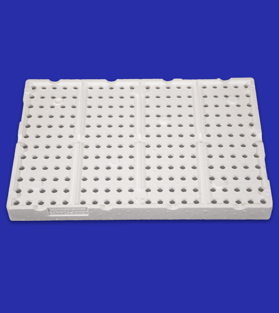 Los canales de poliestireno expandido son piezas largas que cumplen los mismo requisitos de los contenedores individuales, pero que permiten la estandarización de los procesos de siembra. Además, son acoplables y, por tanto, su longitud se adapta a las necesidades de cada explotación. Los canales permiten la inclusión de tubos de calefacción del sustrato, tubos de drenaje y, si es necesario, permiten el alojamiento de cultivos que necesiten raíces al aire libre y la correspondiente recogida de nutrientes.